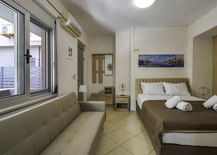 Situated in the Nea Hora district, the 1-room Lazaretta Studio Apartment includes parking and provides bicycles for rent. Just 5 minutes' walk from Agiou Nektariou bus stop, the apartment offers easy access to Cathedral of Eisodion tis Theotokou, set a mere 1.1 km away.